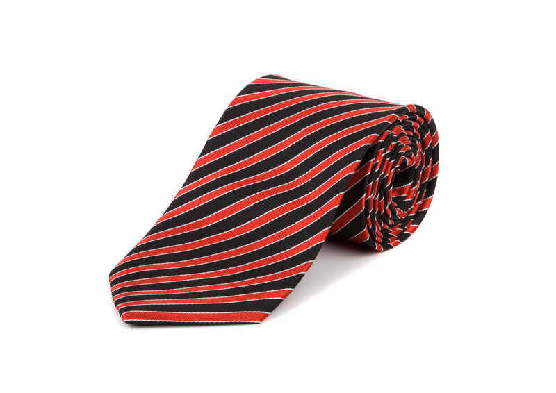 Red & Black Striped 100% Silk Tie